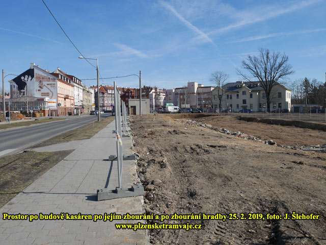 Kaplířova ulice po zbourání hradeb v místě vedel budovy kasáren 25. 2. 2019 Práce v okolí budoucího mostu přes dálniční přivaděč 26. 2. 2019 Info o stavbě přestupního terminálu 25. 2. 2019 Práce probíhají na více místech současně. V Kaplířově ulici zmizely další hradby v místě bývalé budovy kasáren a terénní práce se zvolna rozbíhají také v prostoru budoucího přestupního terminálu na konci Kaplířovy ulice. Dále se pracuje na úpravách podpěr mostu přes dálniční přivaděč a rostou zde další opěrné zdi.