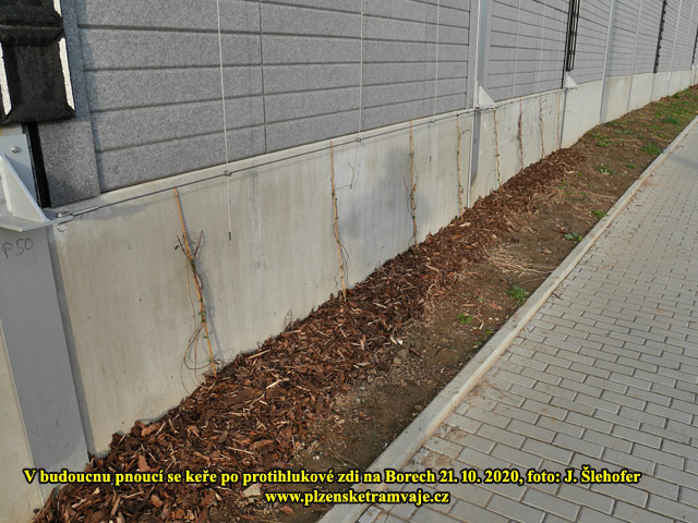 Vysázené stromy v obratišti Univerzita 21. 10. 2020 Vysázené stromy v obratišti Univerzita 23. 10. 2020 Vysázené keře u protihlukové zdi na Borech 21. 10. 2020 Příprava na výsadbu stromů na Borech 22. 10. 2020