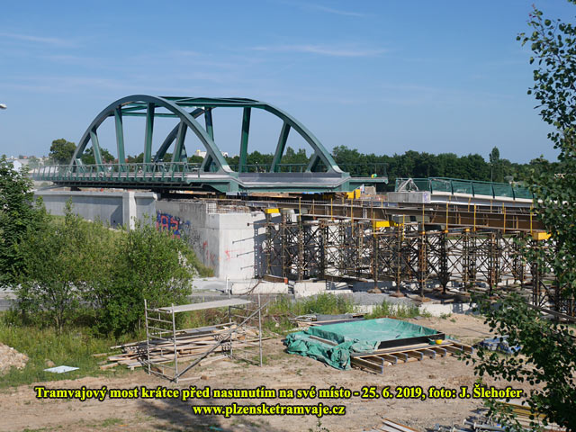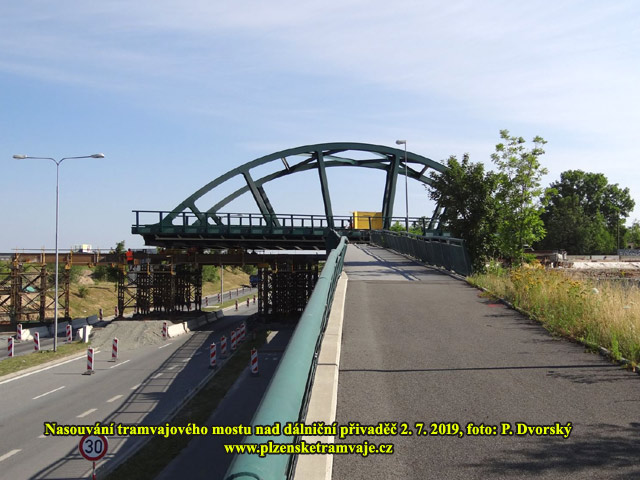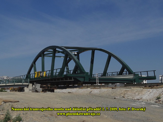 V prvním červencovém týdnu je také stěhován tramvajový most, který byl v předchozích týdnech smontován vedle svého budoucího umístění. Rychlost posunu 350 tun těžkého kovového obloukového kolosu je zhruba 36 centimetrů za deset minut.
