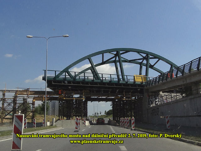 25. 6. 2019 25. 6. 2019 Koncem června 2019 je dokončena montáž tramvajového mostu a je připravena dráha pro jeho nasunutí nad dálniční přivaděč. Ve stejné době se také rozbíhají viditelnější práce v prostoru budoucího terminálu Bory.
