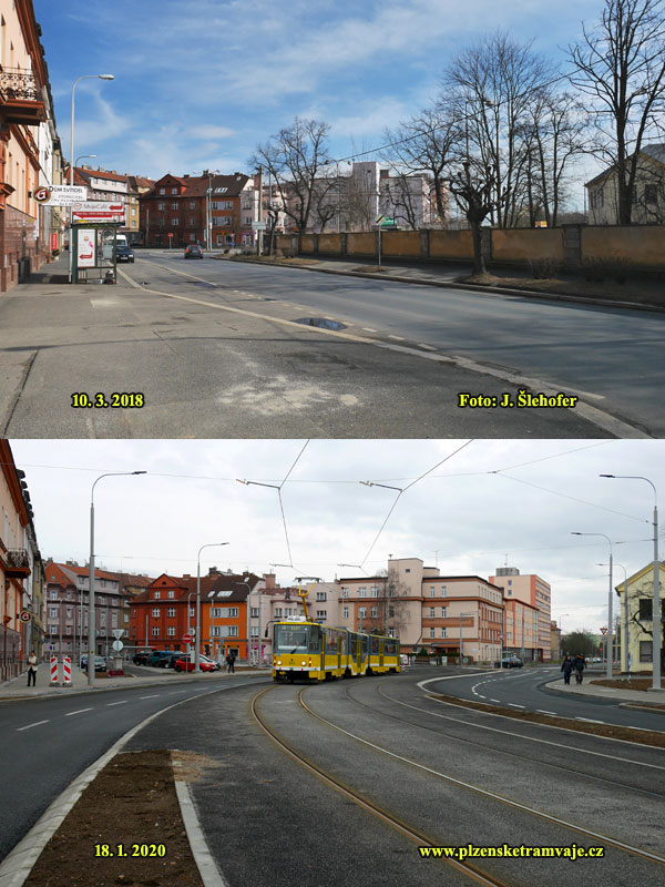 24. 2. 2020 24. 2. 2020 Koncem února 2020 tak tramvaje opět projíždějí staveništěm. Kromě křižovatky se pracuje také na části Klatovské třídy, tedy úseku vozovek směrem do centra.