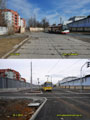 Přibližně po dvou týdnech je vykáceno. Další obrázky tak ukazují znovu trasu tramvajové trati, ale již bez stromů.