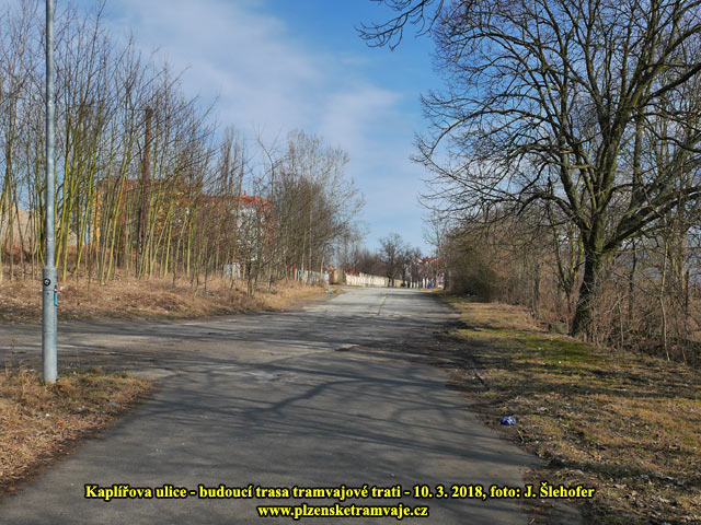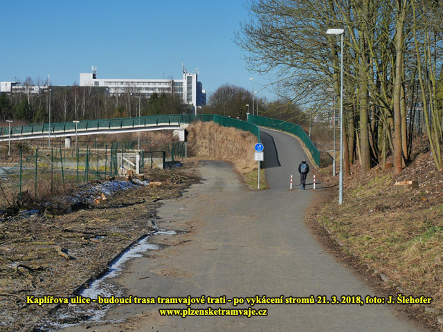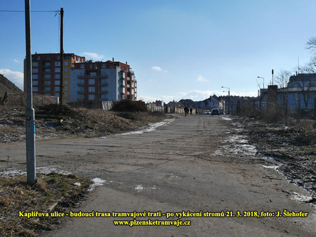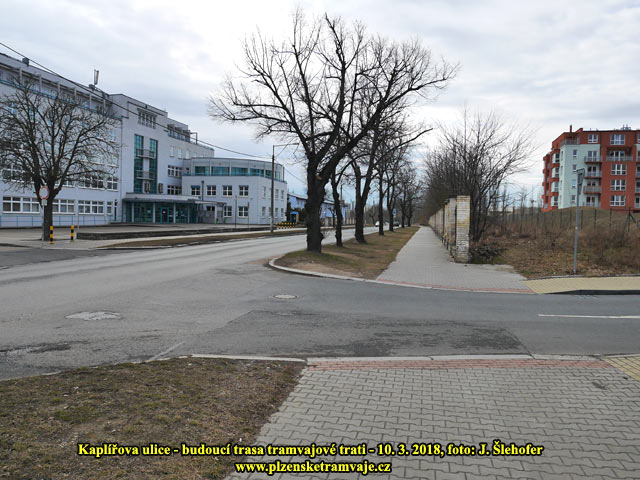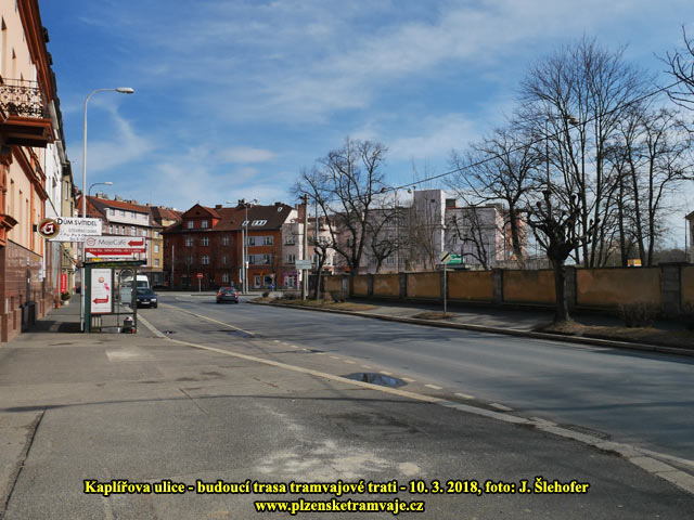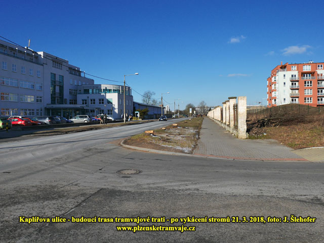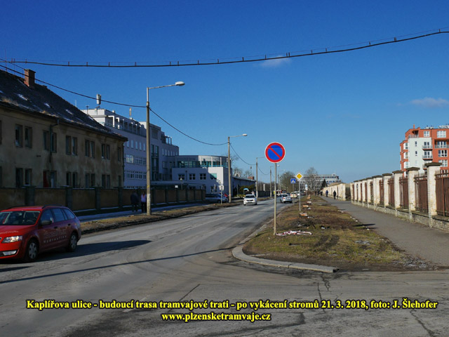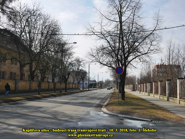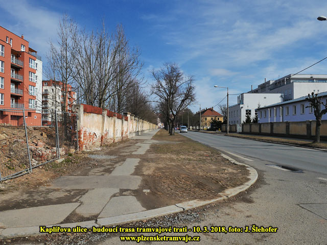 Kaplířova ulice těsně před kácením 10. 3. 2018 Kaplířova ulice těsně před kácením 10. 3. 2018 Z Klatovské třídy tramvaje odbočí vpravo do Kaplířovy ulice. Křižovatka bude větší a mírně posunutá, aby byla kolmá. Padne tak původní brána borských kasáren, i opuštěný dům kasáren v Kaplířově ulici. V samotné Kaplířově ulici zmizí nejen stromy, ale později také hradby po obou stranách.