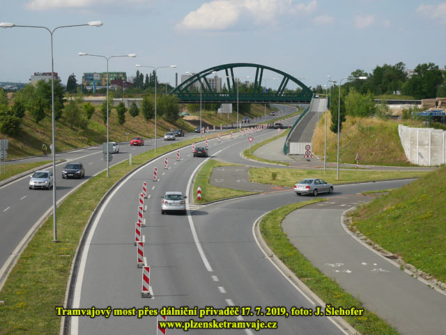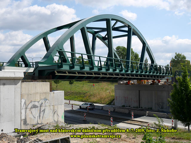 Budoucí konečná Bory 15. 7. 2019 Již usazený tramvajový most přes dálniční přivaděč 15. 7. 2019 Tramvajová most přes dálniční přivaděč 17. 7. 2019 Kaplířova ulice 15. 7. 2019