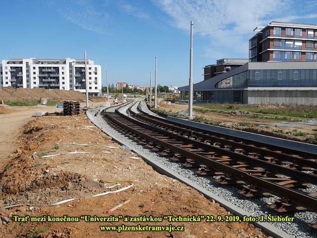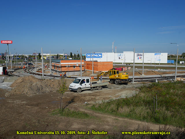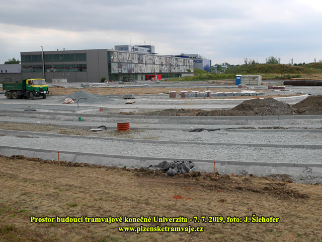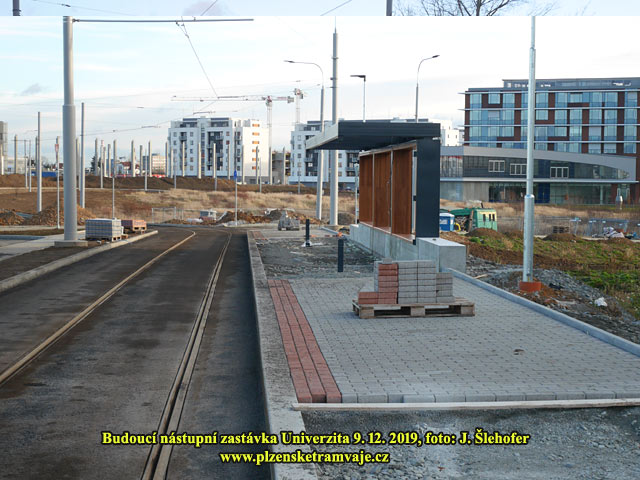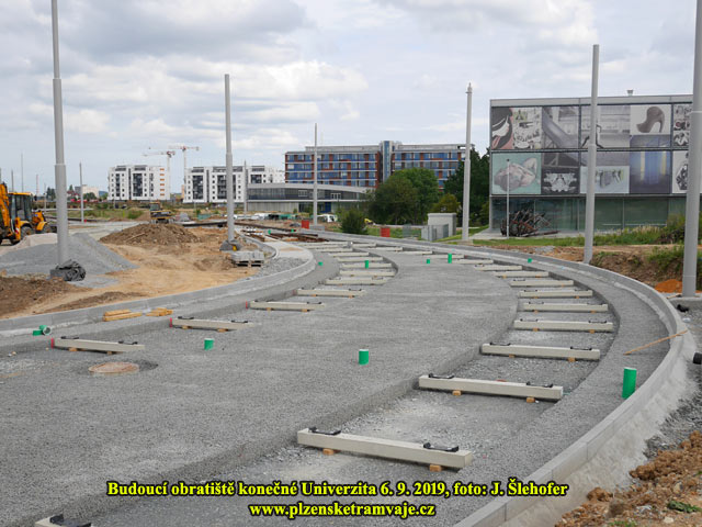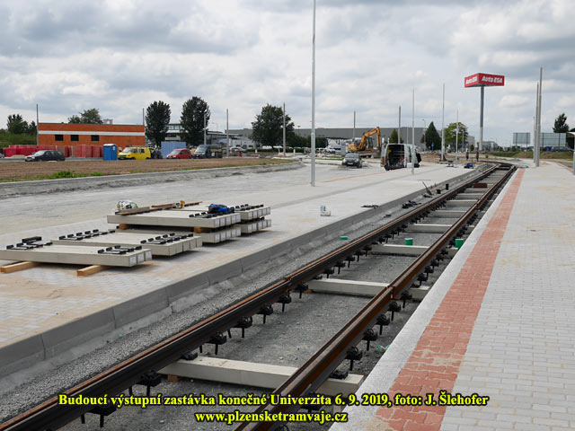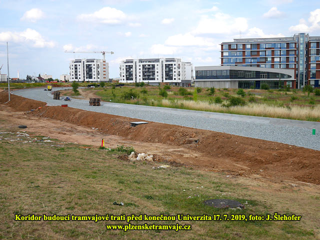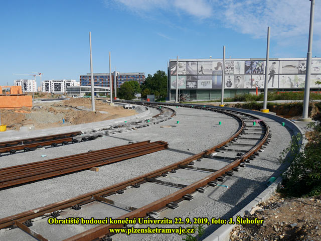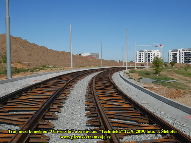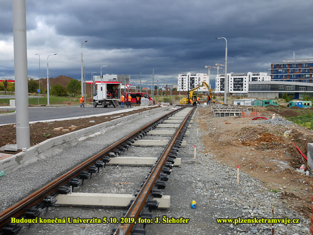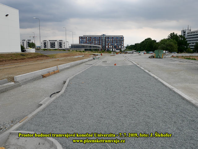 První sloupy na budoucí konečné Univerzita 14. 7. 2019  Budoucí konečná Univerzita 15. 7. 2019  Budoucí konečná Univerzita 15. 7. 2019 Budoucí trať před konečnou Univerzita 17. 7. 2019