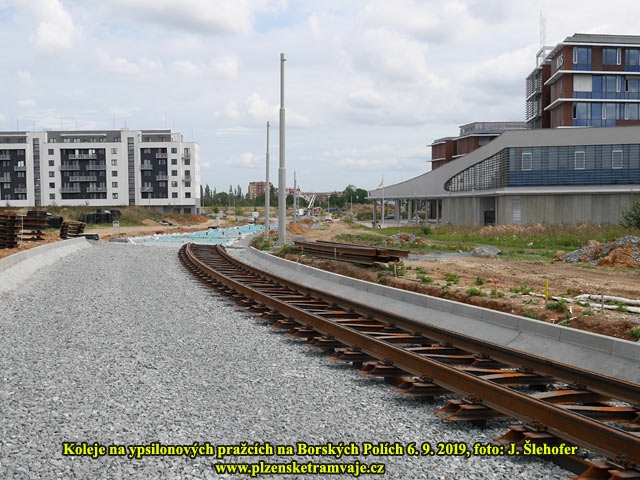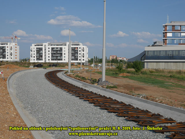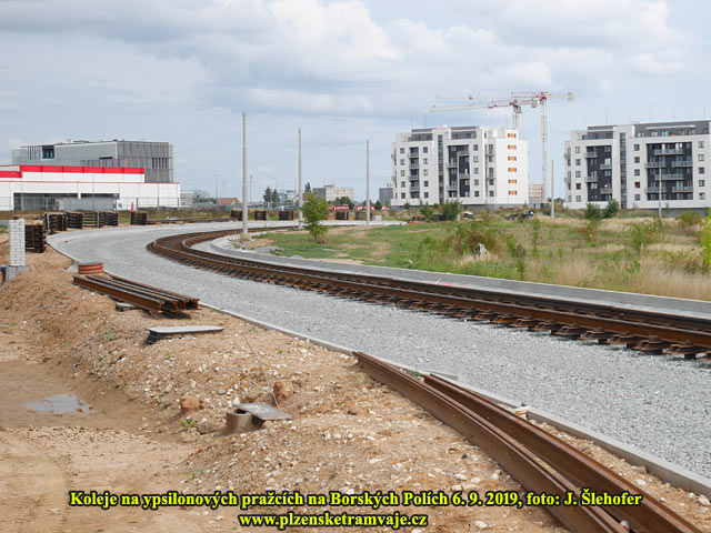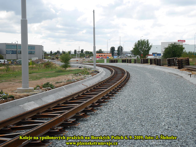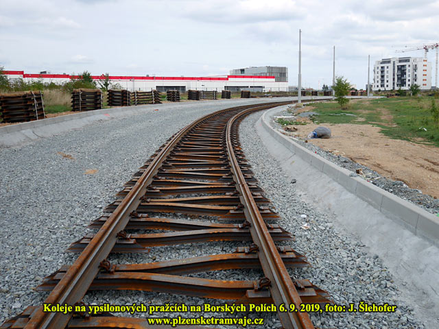 31. 8. 2019 31. 8. 2019 O kus dál, směrem na Bory jsou pak v táhlém oblouku již položeny ypsilonové pražce. Tyto nezvyklé pražce jsou vhodné zejména do oblouků, díky jejich většímu příčnému odporu vůči štěrkovému loži. V Plzni budou použity poprvé a v ČR jsou používané na rekonstruovaných úsecích meziměstské tramvajové trati Liberec - Jablonec nad Nisou.