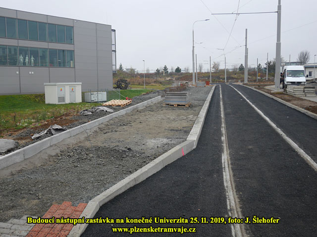 V polovině července 2019 se na budoucí konečné Univerzita objevují první sloupy pro budoucí trolejové vedení. Patrně aby mohly být již také dodělávány některé povrchy nástupišť a chodníků, kde je již pokládána dlažba.