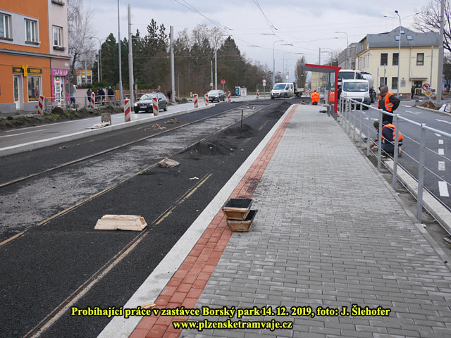 Prakticky do posledních chvil se pracuje zejména v nové zastávce Borský park a v jejím okolí. Ta bude zprovozněna pouze ve směru z centra. Opačná nemohla být zatím vybudována, když je po pravé straně komunikace veden obousměrný provoz automobilů. Zastávka tak vyroste až na jaře, neboť nyní přes zimu bude aktivita na stavbě zmírněna. V poslední den před slavnostním zahájením provozu je ještě asfaltován prostor kolejiště. Také je navážena zemina do dělícíh ostrůvků, či prostorů pro trávníky vedle komunikací.