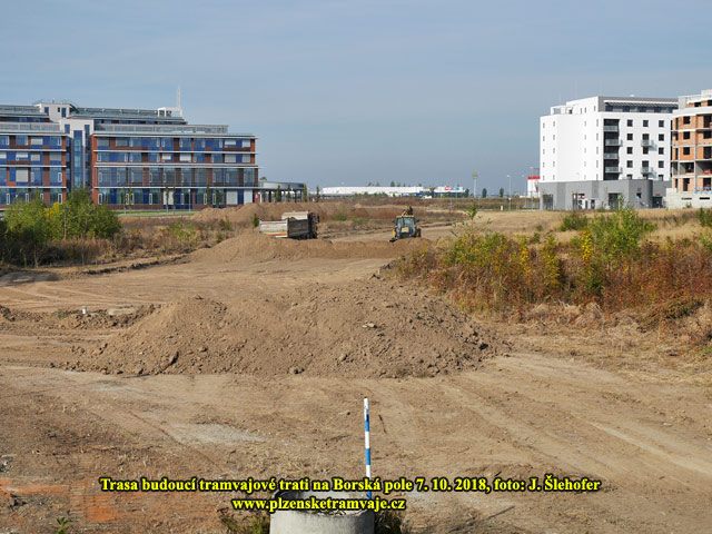 Trasa budoucí tramvajové trati na Borská Pole 7. 10. 2018 Trasa budoucí tramvajové trati na Borská Pole 7. 10. 2018 V zadní části trasy tramvajové trati za dálničním přivaděčem již probíhají první terénní úpravy.