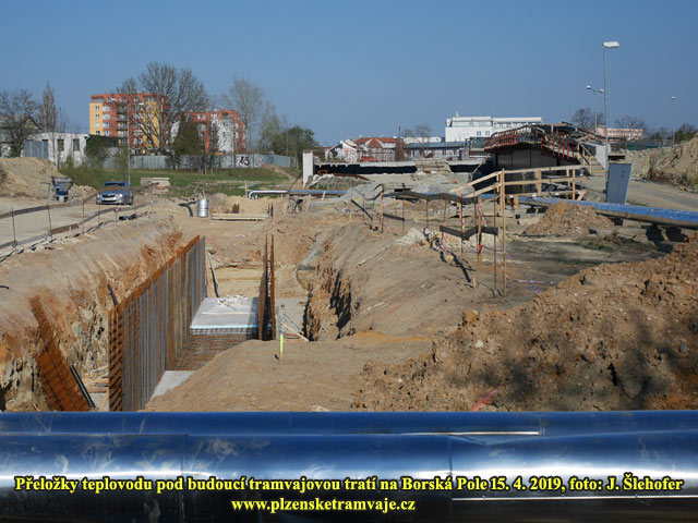 15. 4. 2019 15. 4. 2019 Vydatně se pracuje také v okolí mostu. Upraveny byly podpěry, na které bude most usazen a vyrostly zde také nové podpěrné zdi. Za mostem ve směru k Borským Polím probíhá také stavba kolektoru pro teplovod, který zde kříží trasu tramvajové trati. Nyní vede teplovod provizorní přeložkou.