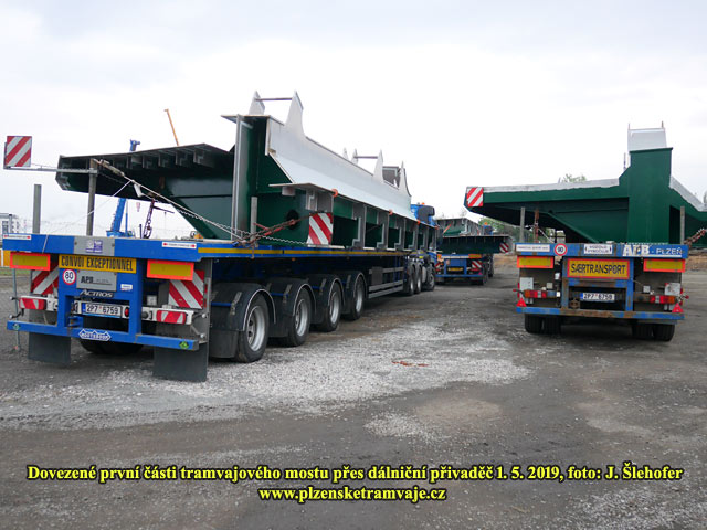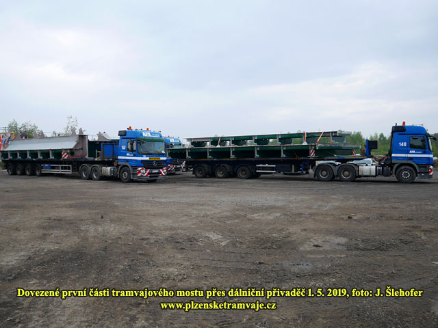 1. 5. 2019 jsou na stavbu přivezeny také první díly mostu, který překlene klatovský dálniční přivaděč.