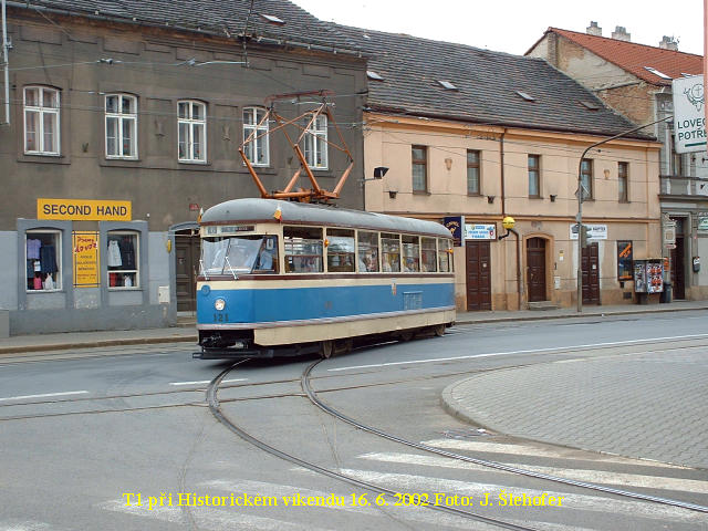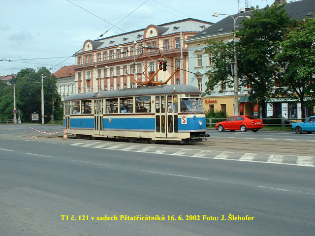 Vybrané fotografie historického vozu č. 121 ještě v modré barvě (řazeno dle doby pořízení): 1, 2, 3, 4, 5, 6, 7, 8, 9, 10, 11, 12, 13, 14, 15, 16, 17,