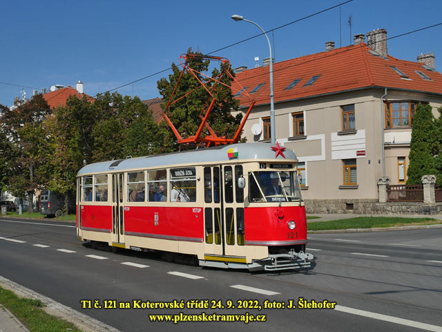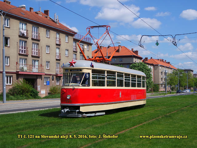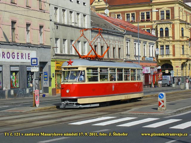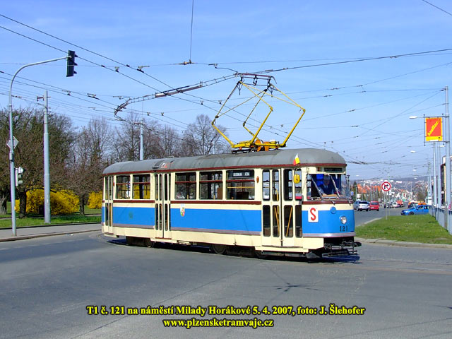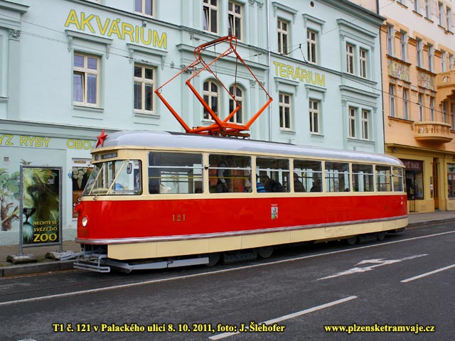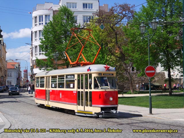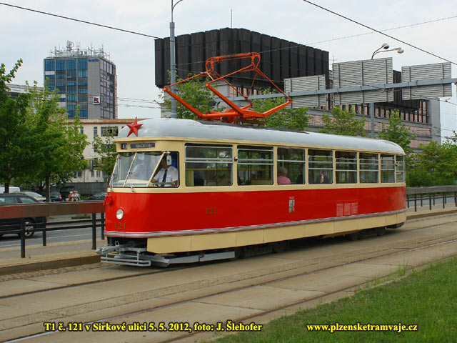 Následující video zachycuje historický vůz T1 č. 121 ještě v modrém nátěru v ulicích Plzně při objednaných jízdách v roce 2008 a 2009.