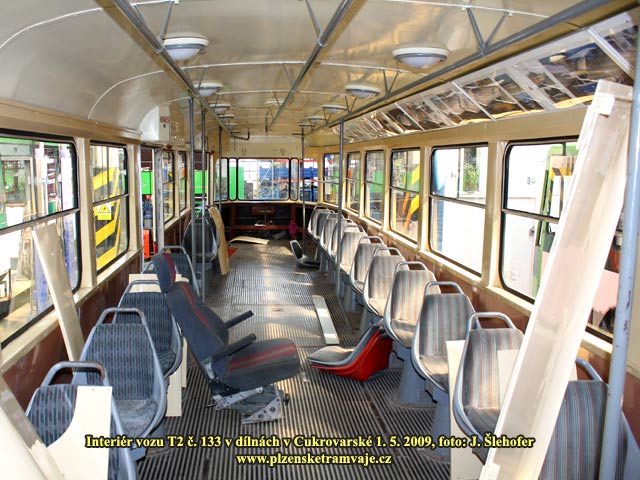 Na co zatím bohužel nedošlo, jsou sedačky. Výroba replik původních sedaček v budoucnu však není vyloučena a jediné, co by pak na voze zůstalo viditelně neoriginální, budou okna z T3. To však již mnoho běžných lidí nepostřehne a už jen odborníci tuší, že vůz má rovněž nepůvodní elektrovýzbroj z vozu T3.