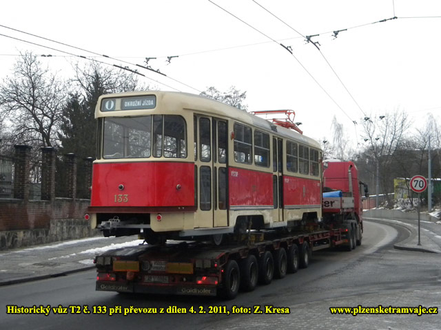 V Plzni byly z tramvaje odstraněny reklamní nápisy (barevná fólie prozatím zůstala) a obdržela evidenční číslo 133. To bylo vybráno z toho důvodu,