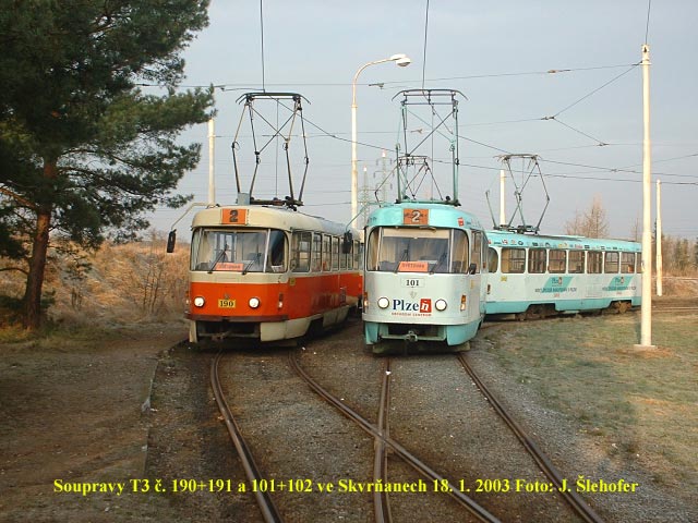 Poslední červená souprava č. 190+191 jezdila až do konce července 2004. Tato souprava měla již však značně neoriginální světlejší kabátek,