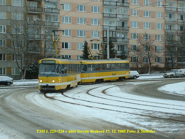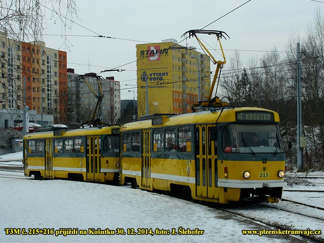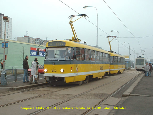 Další soupravou T3M, která vyjela po velké prohlídce ve žlutošedém nátěru jsou vozy 215+216 a stalo se tak 20. 12. 2005.