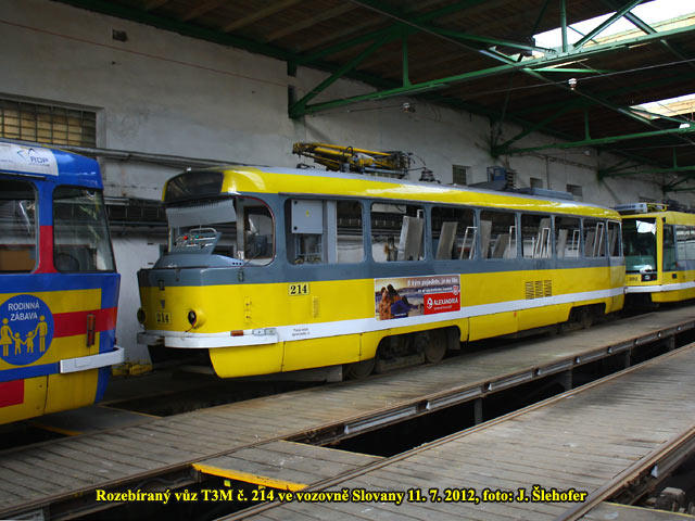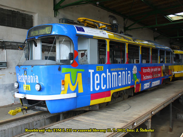 Dalšími vozy T3M po dílnách jsou 211+212, které vyjely v červnu stejně jako vůz 230, který je ale již z poslední série T3M a