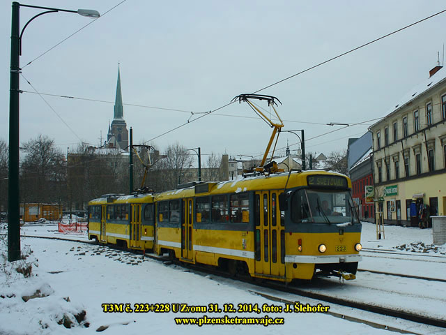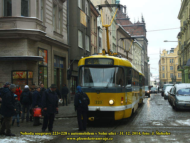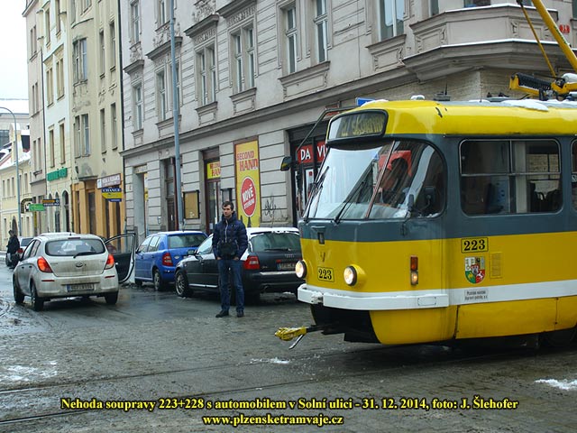 Poslední den roku 2014 byly naposledy vypraveny do provozu soupravy T3M č. 223+228 (na linku č. 2) a 215+216 (na linku č. 4). Přibližně v 11:40 však došlo v Solní ulici