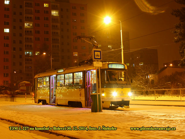 Vůz T3M č. 227 měl být naposledy vypraven 30. 12. 2014 na večerní pořadí linky č. 1. Avšak díky drobné nehodě se ještě krátce do provozu podíval znovu 31. 12. 2014, viz. dále.