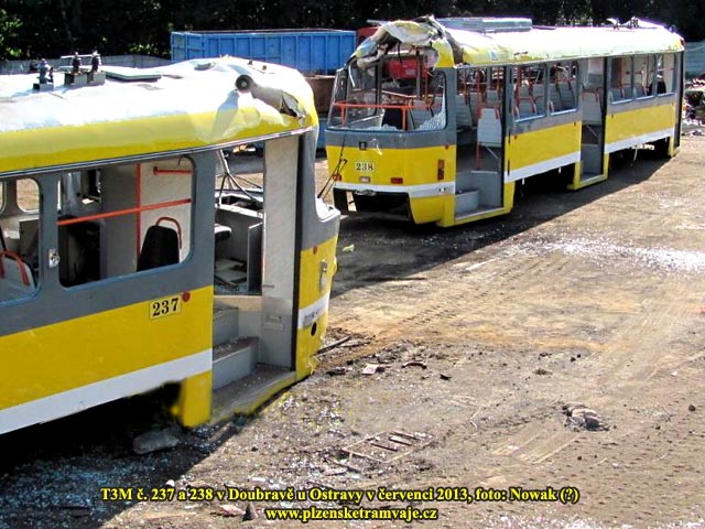 V polovině července 2013 byla vyřazena a odvezena do Krnova nejporuchovější souprava T3M a to 237+238. Později se objevily její fotografie z kovošrotu v Doubravě u Ostravy.