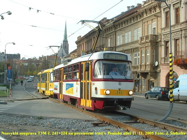 nezvyklou soupravou 237+230 (foto vlevo). Provozními potřebami další nově vzniklá souprava vozů 241+224 (foto vpravo) jezdí od 8. 11. 2005 obvykle