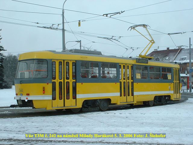 Vůz 242 se po velké prohlídce objevil patrně poprvé v provozu v páteční večer 3. 3. 2006. Jedná se o vůz vážně poškozený v srpnu 2005 při nehodě.