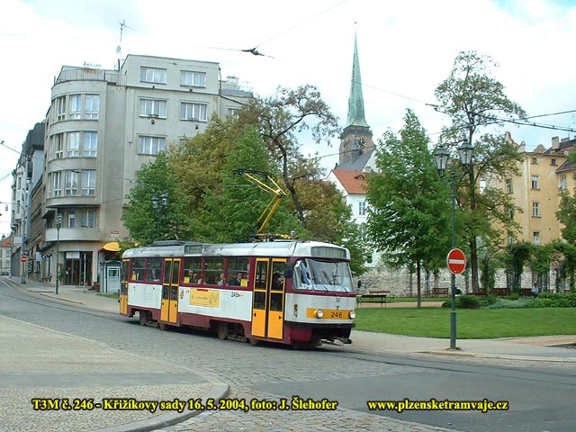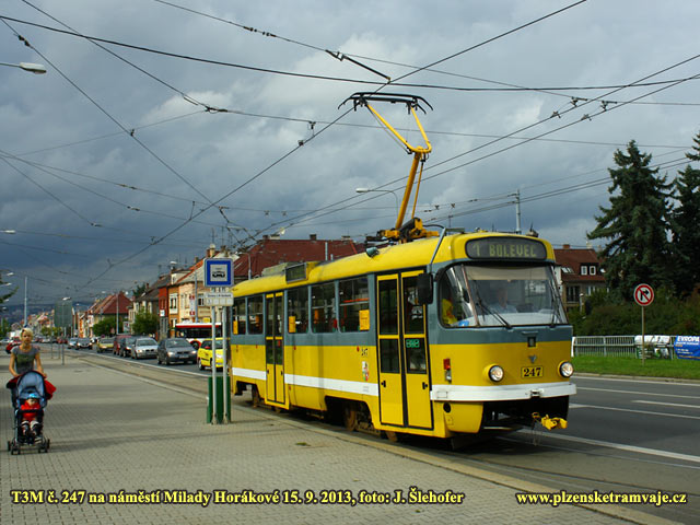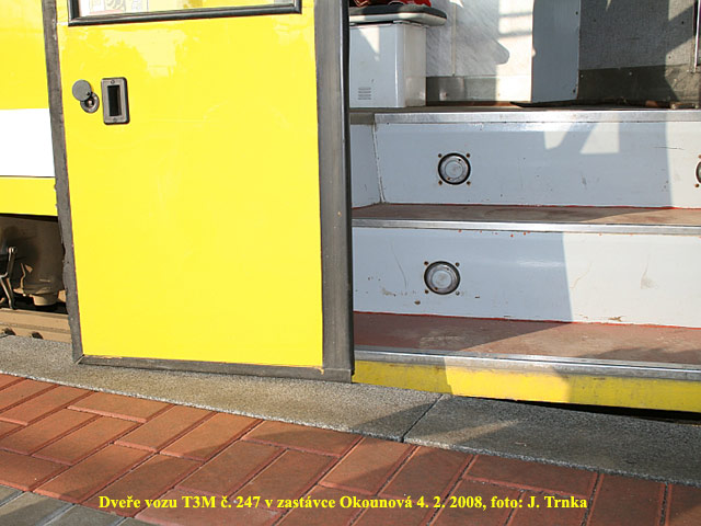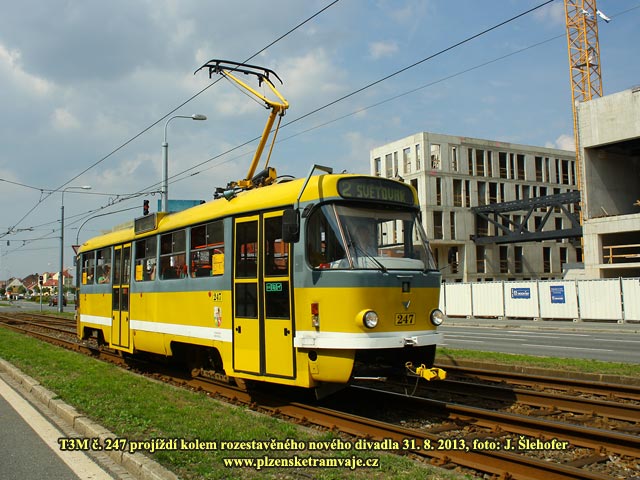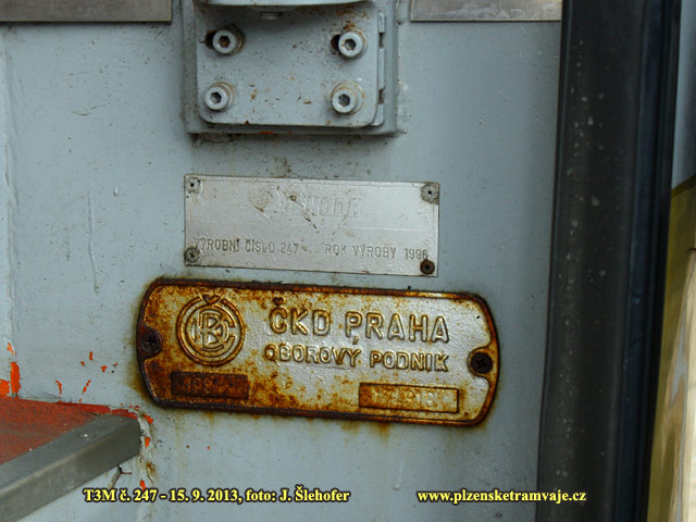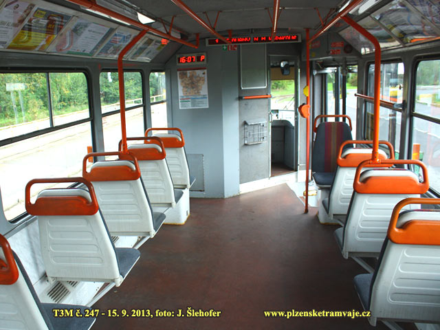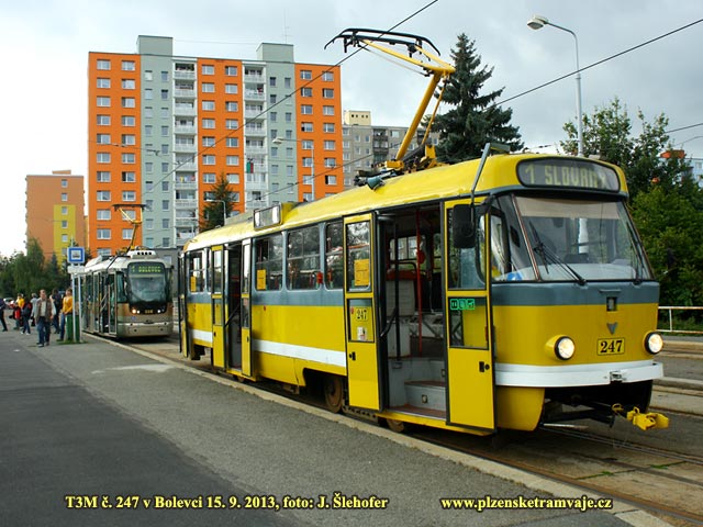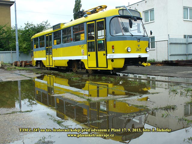 zkušenostech s výhledem řidiče dostaly další vozy T3M již opět dveře skládací. Vůz T3M č. 247 byl z Plzně odvezen 17. 9. 2013.