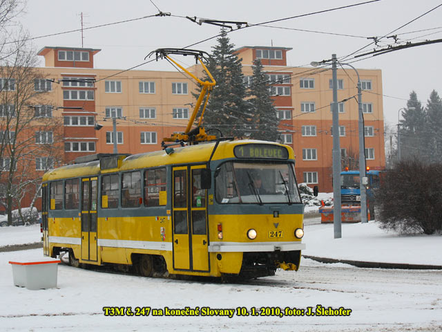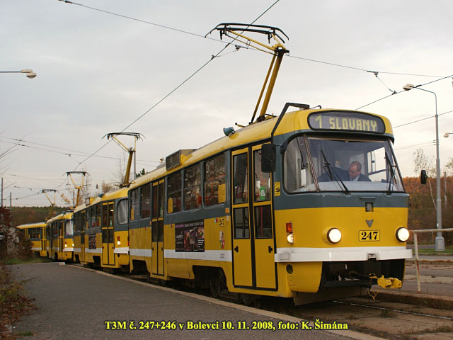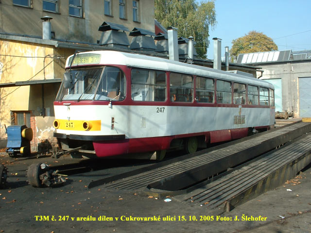 Vůz byl již delší dobu odstaven se závadami. Druhý vůz T3M a nyní tedy již jediný s atypickými dveřmi (č. 247) bývá v provozu sólo ve večerních