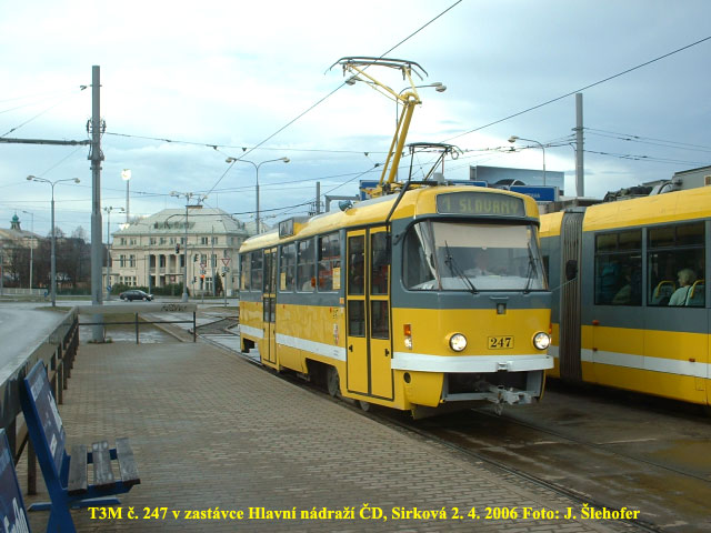 Dalším dokončeným vozem je č. 247 (původně druhý prototyp T3M s výklopnými dveřmi), který nyní po velké prohlídce vyrazil do ulic 2. 4. 2006.