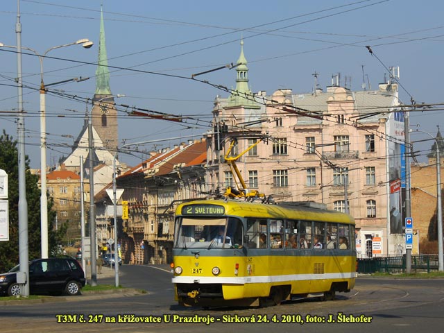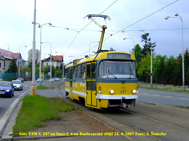 č. 247 se objevuje například 24. 4. 2007 na lince č. 4, kdy je letos již po několikáté kritický nedostatek souprav pro běžnou