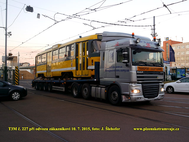 Vyřazené vozy T3M byly opakovaně nabízeny k prodeji a kupec pro ně se na několikátý pokus našel. Nabízeny byly bez sběračů, palubních počítačů a bez spřáhel. Některým vozům při odvozu spřáhla zůstala. Poslední vozy T3M tak byly odprodány ukrajinskému zákazníkovi. Sedm vozů (215, 216, 221, 222, 223, 225, 226) bylo odvezeno 9. 7. 2015 a