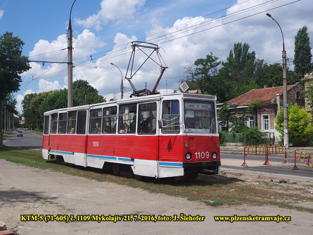 Spolu s bývalými plzeňskými vozy jsou v Mykolajivě provozovány také tramvaje Tatra-Yug T6B5, K1 a ještě staré ruské vozy KTM-5 a KTM-8 (71-605 a 71-608K) z Usť-Katavského vagonstrojitělného zavodu.