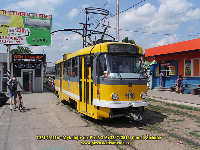 Prodaných 11 tramvají T3M opustilo Plzeň 9. a 10. 7. 2015. Dle informací dohledaných na internetu, se pak vozy T3M objevují postupně od konce září 2015 v ukrajinském městě Mykolajiv