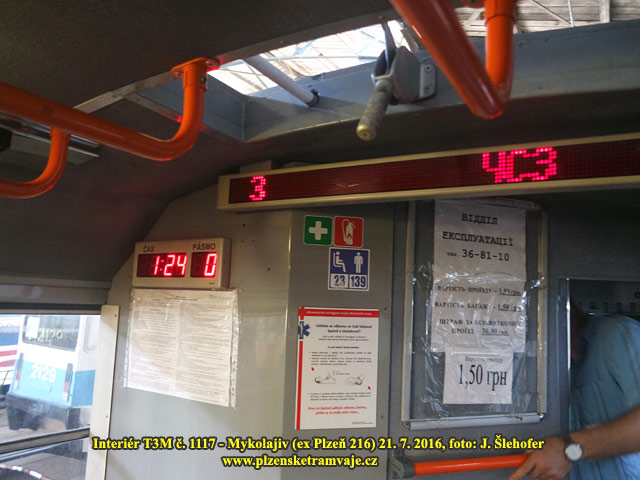 Později jsou však vozy v Mykolajivě vystrojovány místním palubním počítačem informačního systému, vozům začínají tabla fungovat a také hlásí zastávky. Město Mykolajiv jsme s přáteli navštívili