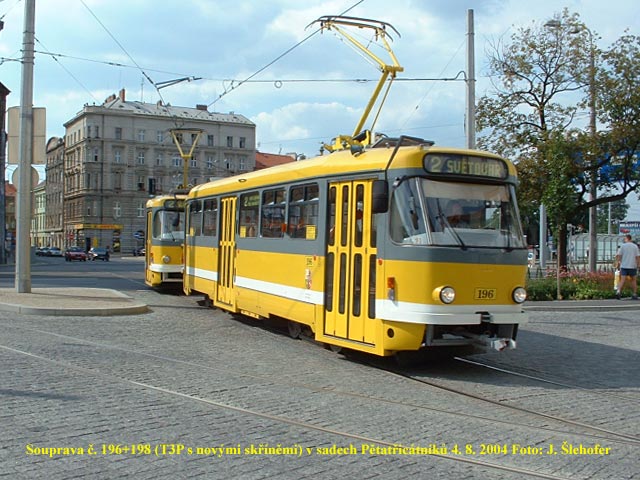 Souprava 196+198, která byla přestavěna do nových skříní, neboť byla vážně poškozena při něhodě v červnu 2002,