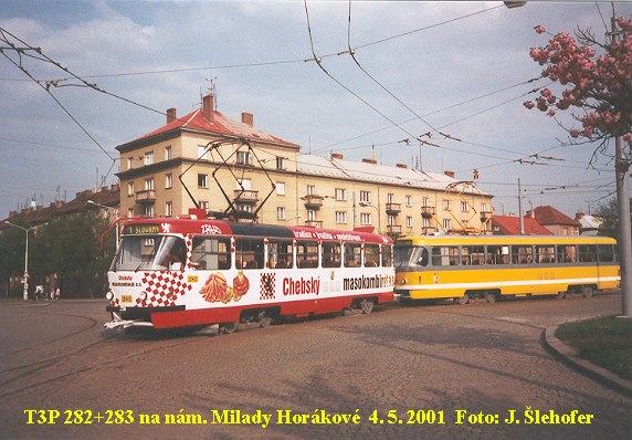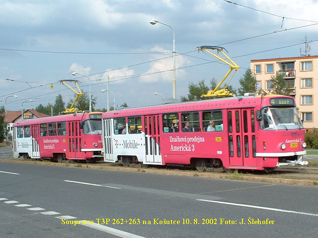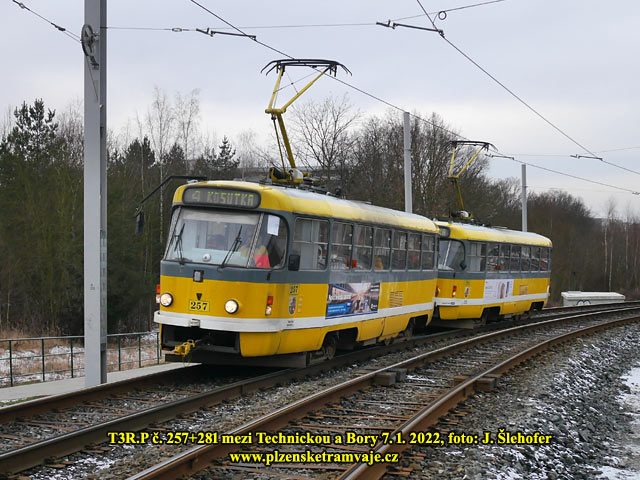 soupravy dvou vozů T3R.P, tedy oba vozy "vysoké". Nejprve je to jen souprava 257+281, ale brzy následují i další. Nasazovány jsou na šejdrové spoje linky č. 4,
