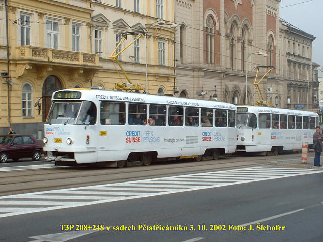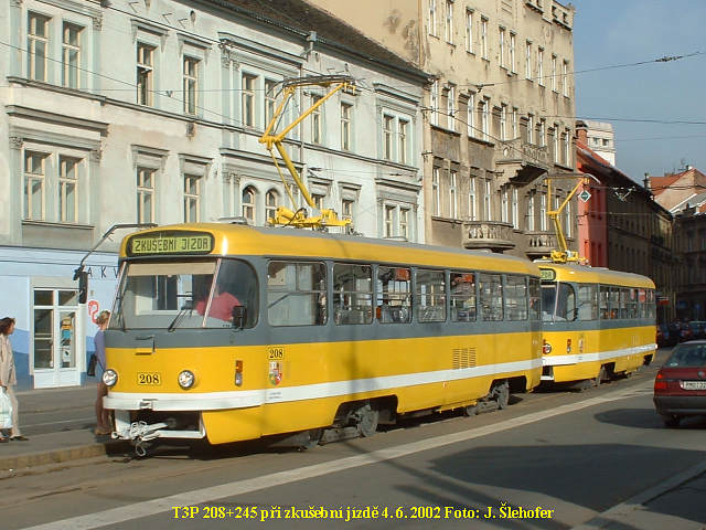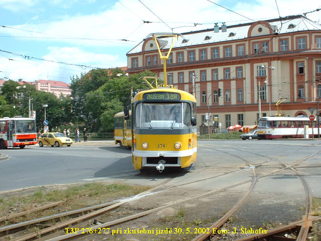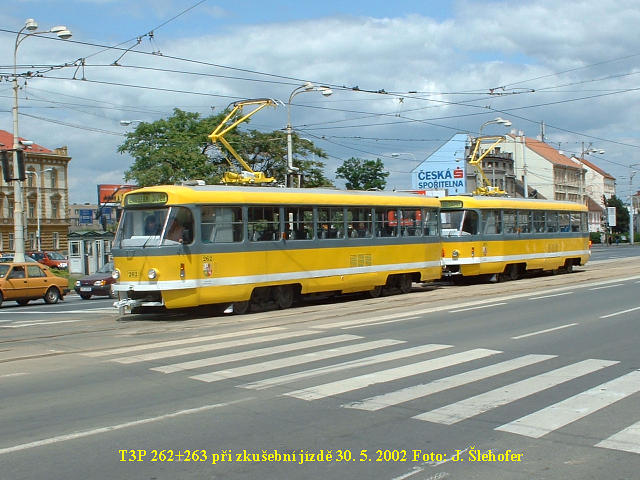 Až téměř o rok a půl později vyjela na zkušební jízdy první série osmi vozů již ve standartní podobě (262+263 a 276+277- od 30. 5. 2002, 208+245 a 264+249 - od 3. 6. 2002). Na těchto fotografiích jsou zachyceny právě první zkušební jízdy první série vozů T3P. V provozu s cestujícími se postupně objevují v provozu od 17. července 2002.