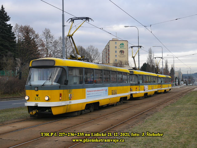 O den později, tedy 21. 12. 2021 přijela z Mozartovy do vozovny další trojička ve složení 217+236+235.
