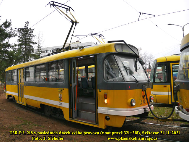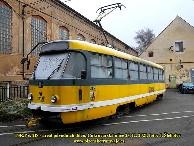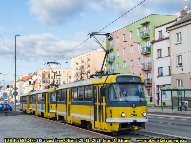Trojička T3R.P 268+248+218 míří z Mozartovky do vozovny 20. 12. 2021. Ještě ten den opouští vozovnu vůz č. 218 a je odvezen k zákazníkovi do Cukrovarské ulice.