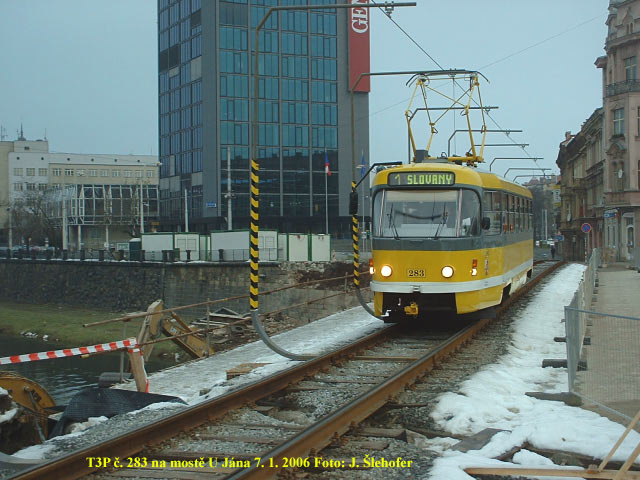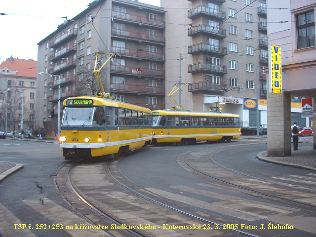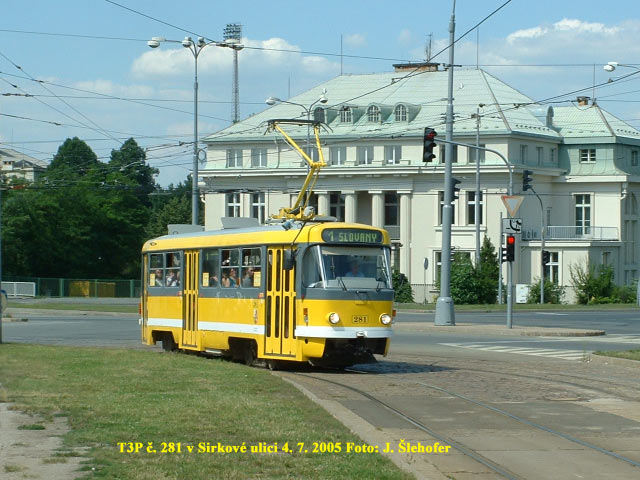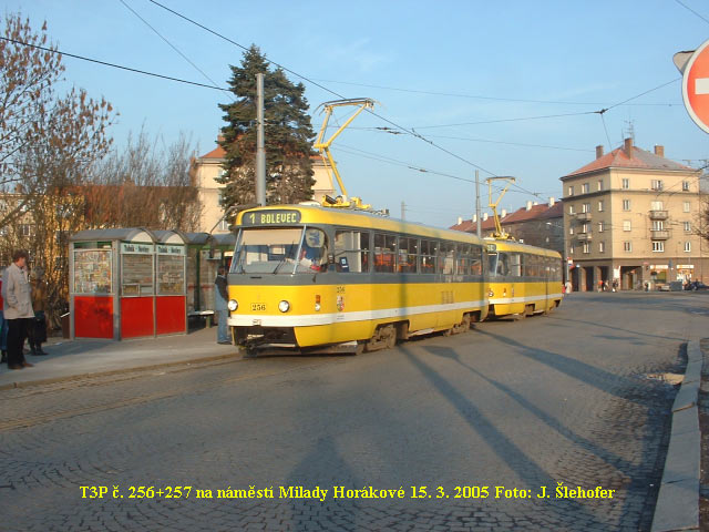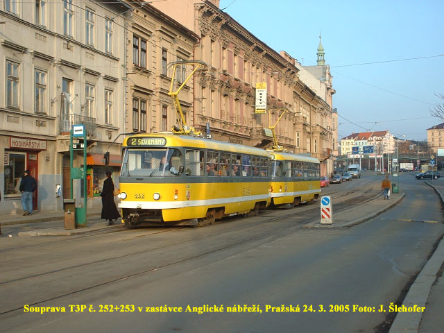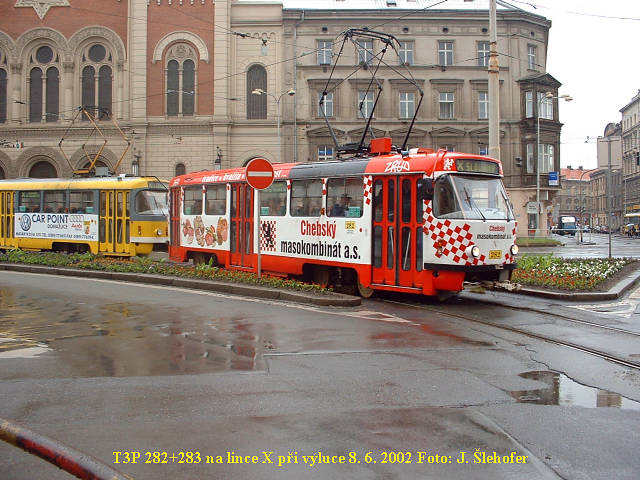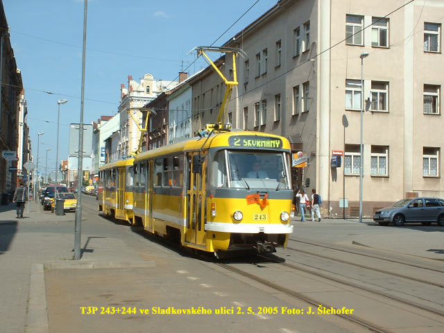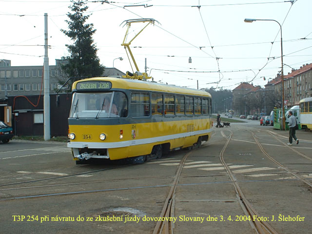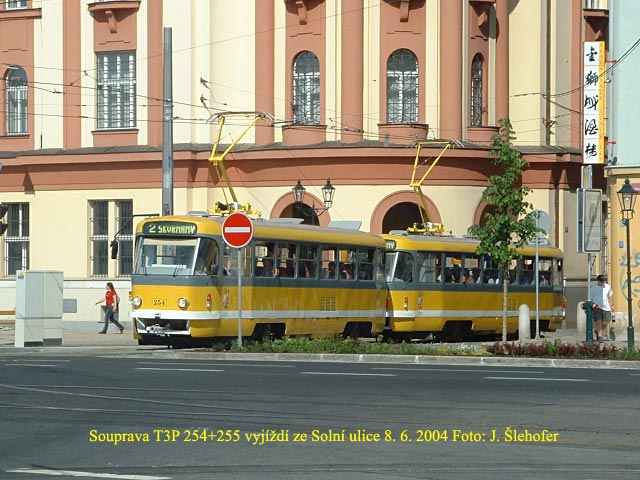 pravidelného provozu souprava T3P č. 254+255. Na fotografii z 8. 6. 2004 je zachycena při výjezdu ze Solní ulice.