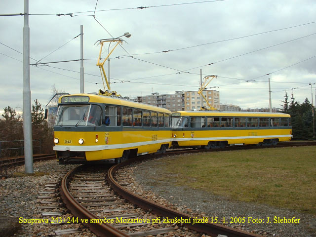 Mozartova, kde z důvodu rekonstrukce vozovny byly dosud odstavené a právě v době omezeného vánočního provozu byl potřeba další prostor pro odstavování vozů v době nižší výpravy.