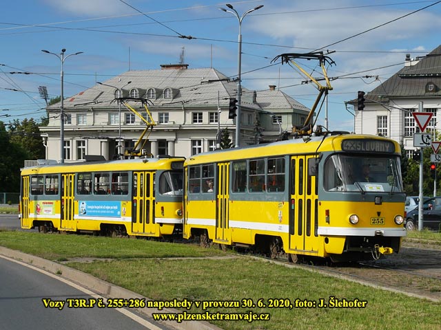 Např. vozy 255+286 dojezdily spolu v této nezvyklé soupravě 30. 6. 2020.