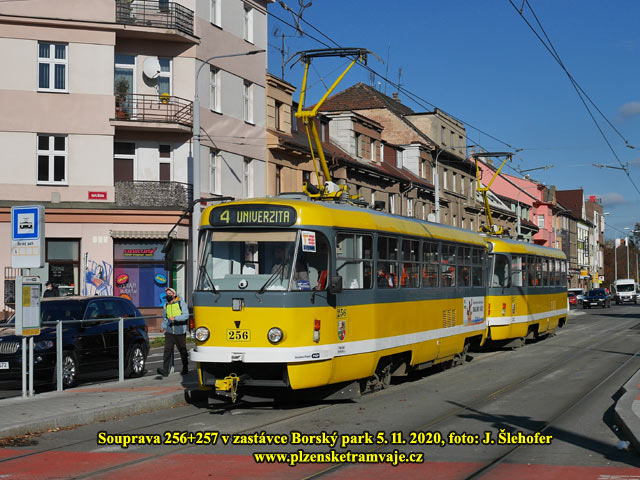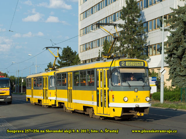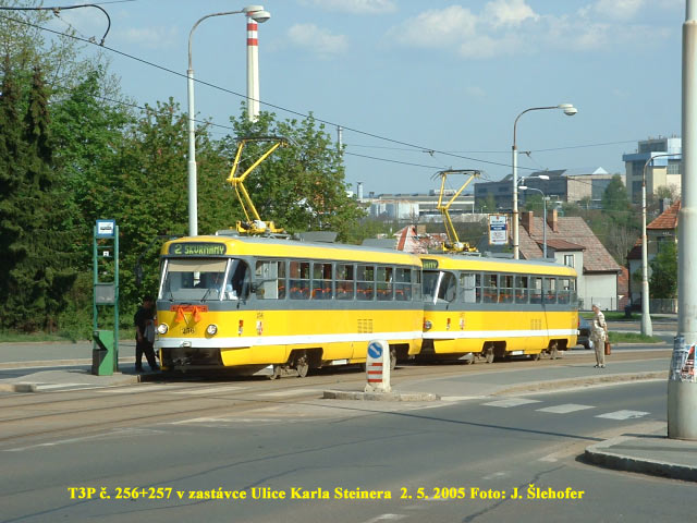 kdy je na snímku vpravo zachycena souprava 257+256 při návratu do vozovny.