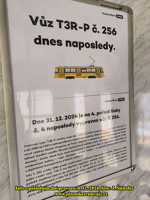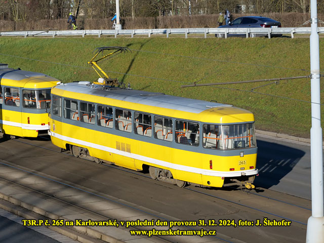 Další dva vozy T3R.P končí v provozu 31. 12. 2024 a to čísla 256 a 265. V provozu tak zůstávají již jen dva 257 a 260 (samozřejmě jako zadní vozy za wanou).