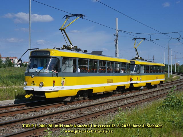 Poslední nasazovanou soupravou dvou "vysokopodlažních" vozů T3R.P byla 280+281. Tyto vozy pak zatím zůstávají v provozu jako zadní vozy. S koncem června 2023 končí zcela v provozu vozy T3R-P(V) č.: 196, 252, 253, 261, 262, 263, a 276.