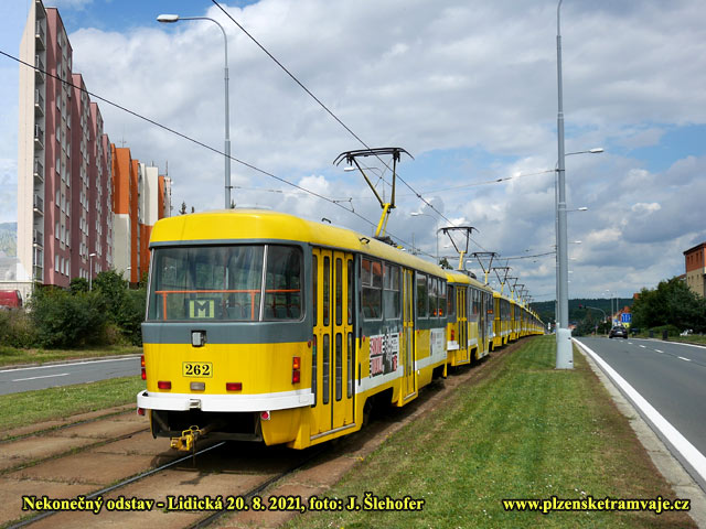 následně při rekonstrukci Plaské a výluce na lince č. 1 do Bolevce (20. 8. - 18. 11. 2021), jsou pak vozy odstavené na Lidické, tedy na začátku vyloučené trati. To že jsou zde vozy odstavené,