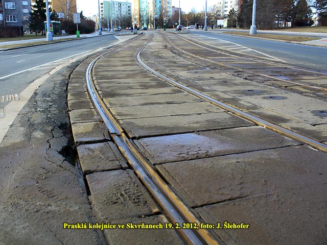 Špatně se však prasklé kolejnice svařují. Prasklá kolejnice v oblouku ve Skvrňanech 19. 2. 2012 Esíčko na trati z BKV panelů před náměstím Republiky 6. 11. 2010 Sváry zřejmě moc dlouho nevydrží (což je patrné na Klatovské třídě, či na tratích kolem náměstí Republiky). Při svařování se ohřevem poškozuje guma kterou jsou koleje utěsněny i podkladová guma a kolejnice je pak v místě sváru uvolněná a má tendenci opět praskat. Postupem doby se pak uvolňují kovové žlaby a panely se prakticky rozpadají.