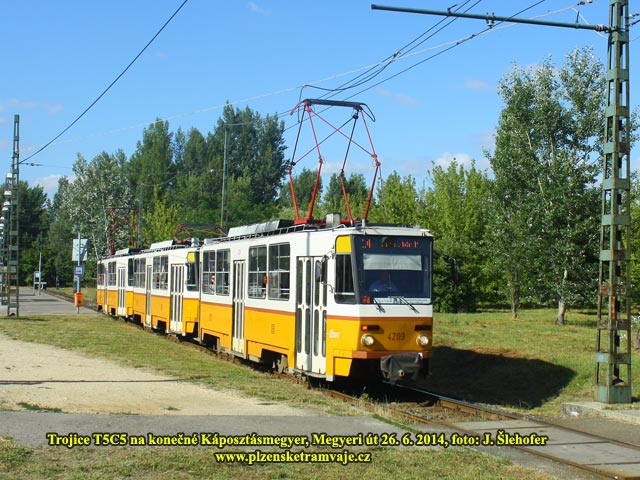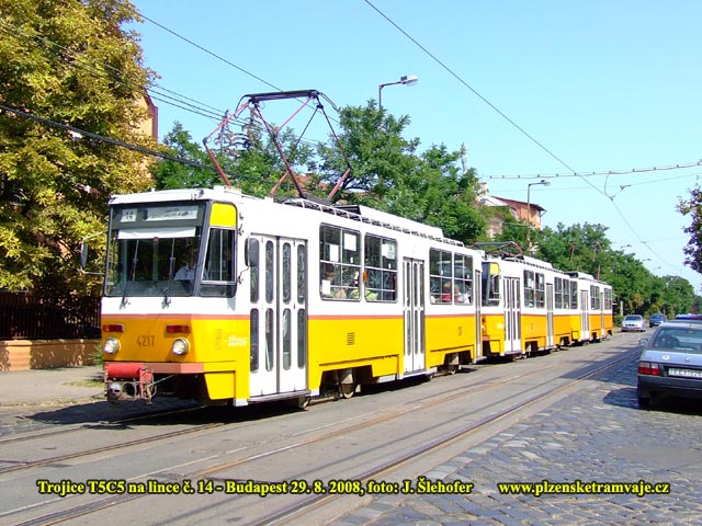 Trojice vozů T5C5 - Budapest 26. 6. 2014 Trojice vozů T5C5 - Budapest 29. 8. 2008 Minimálně na dvou linkách jsou trojice vozů T5C5 provozovány v Budapešti. Zajímavostí zde je také to, že vozy mají dveře po obou stranách a tak spojením zády k sobě vytváří obousměrné soupravy.