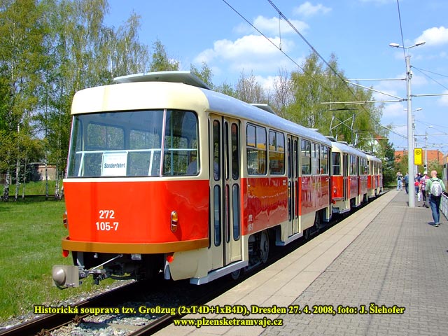 Dresden - Historická souprava T4+T4+B4 - 27. 4. 2008 Dresden - Historická souprava T4+T4+B4 - 27. 4. 2008 T4+T4+B4 v pravidleném provozu 11. 5. 2003 - Dresden Dresden 25. 10. 2003